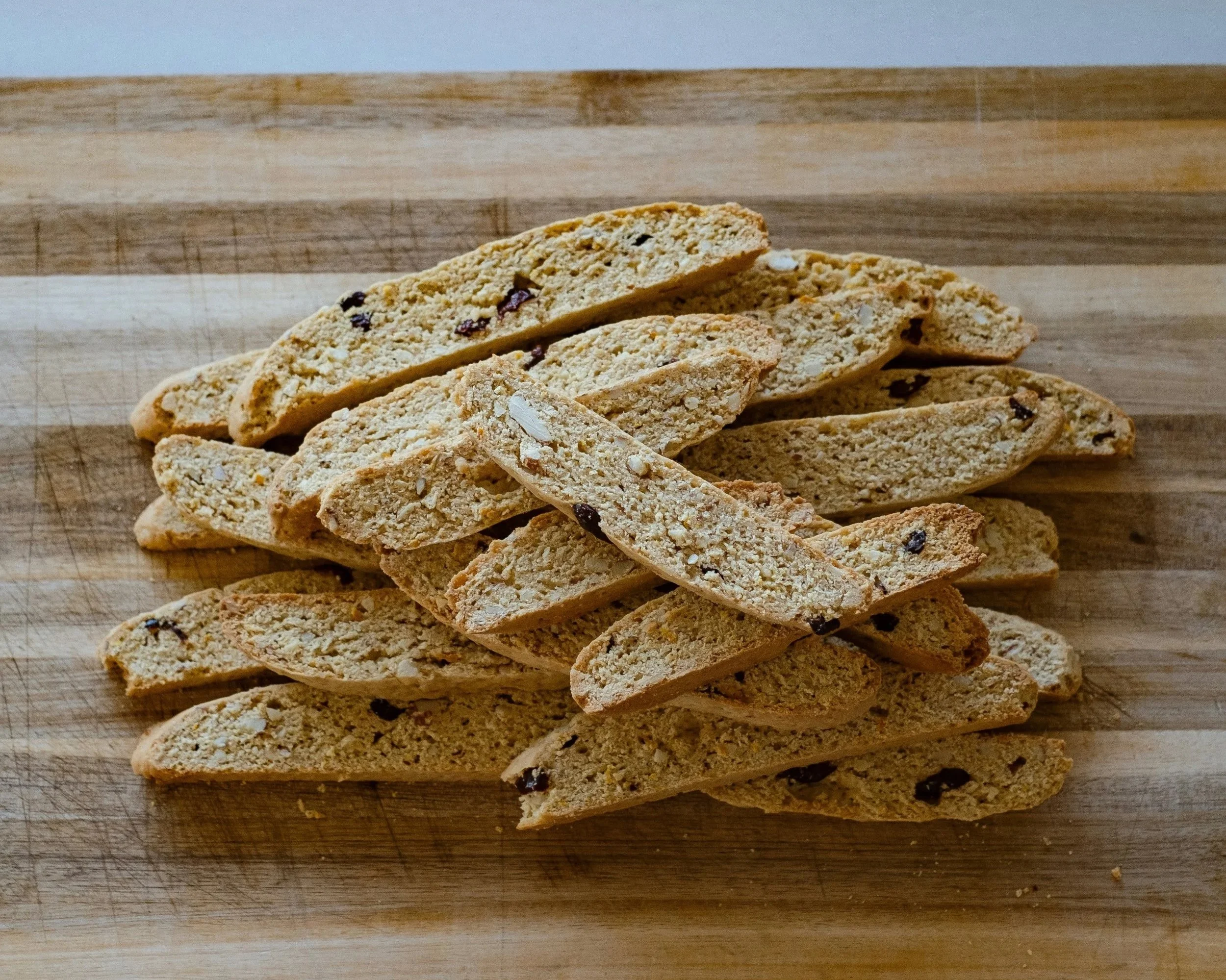 As the name suggests, they’re a traditional Tuscan delicacy originally from Prato. They’re twice baked, almond based, crunchy and perfect to dip in coffee or wine.
